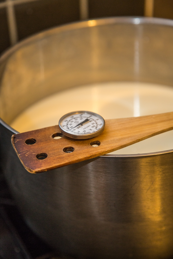 The operation known as “scalding” basically consists of slow-cooking the curds. This is done for several reasons, including making the curds smaller and drier as they expel more whey, and to keep the starting culture active for longer.