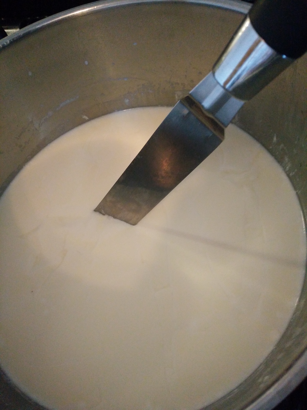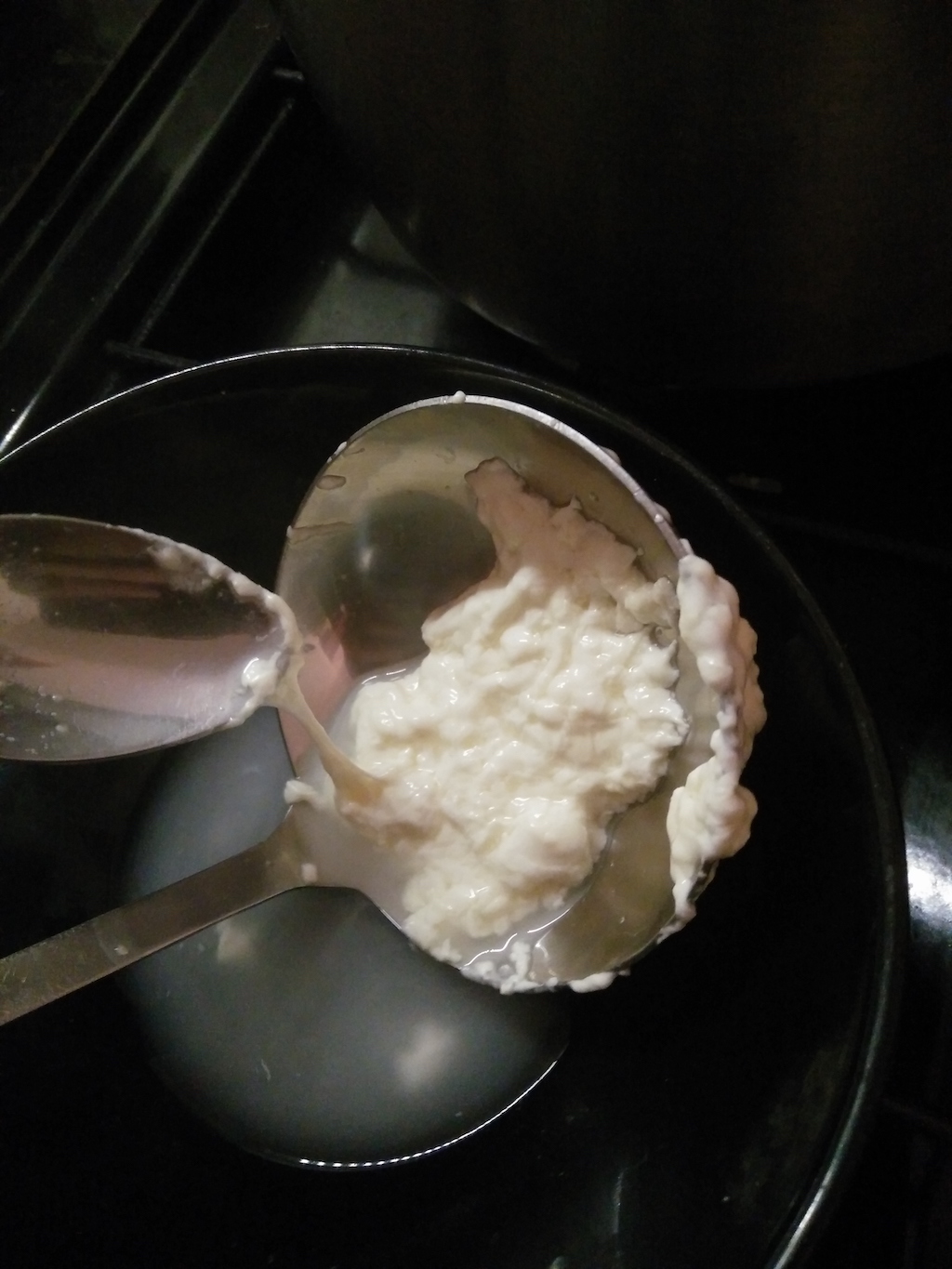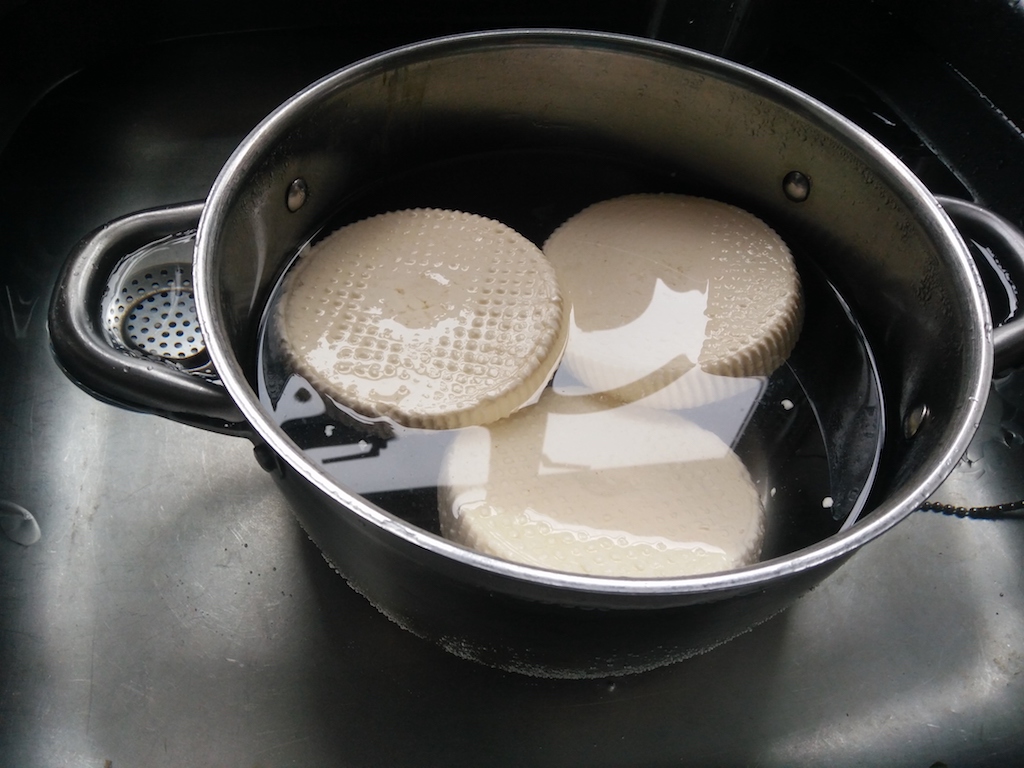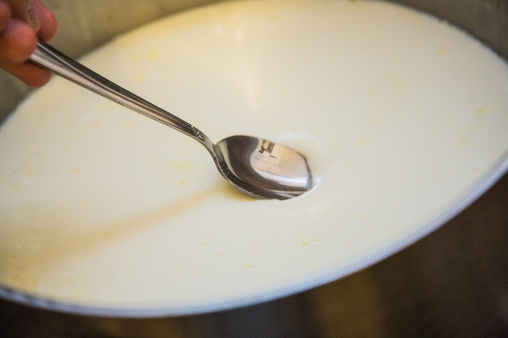 - After a hour, check the curd. If it doesn’t “give in”, it’s ready. It should look like in the following picture.