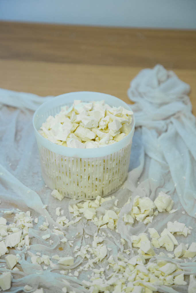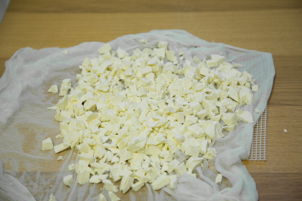 - cut the curds into smaller cubes and make sure they do not overlap too much