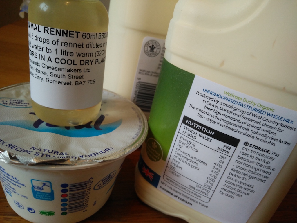 I’m always in two minds about what to consider a good “for dummies” introduction to cheese-making. The problem with very simple recipes is that they don’t capture a full view of all the possible processes and phases of cheese-making, so I prefer to go through a slightly more complex procedure to give a general idea, then come back to more simple recipes.